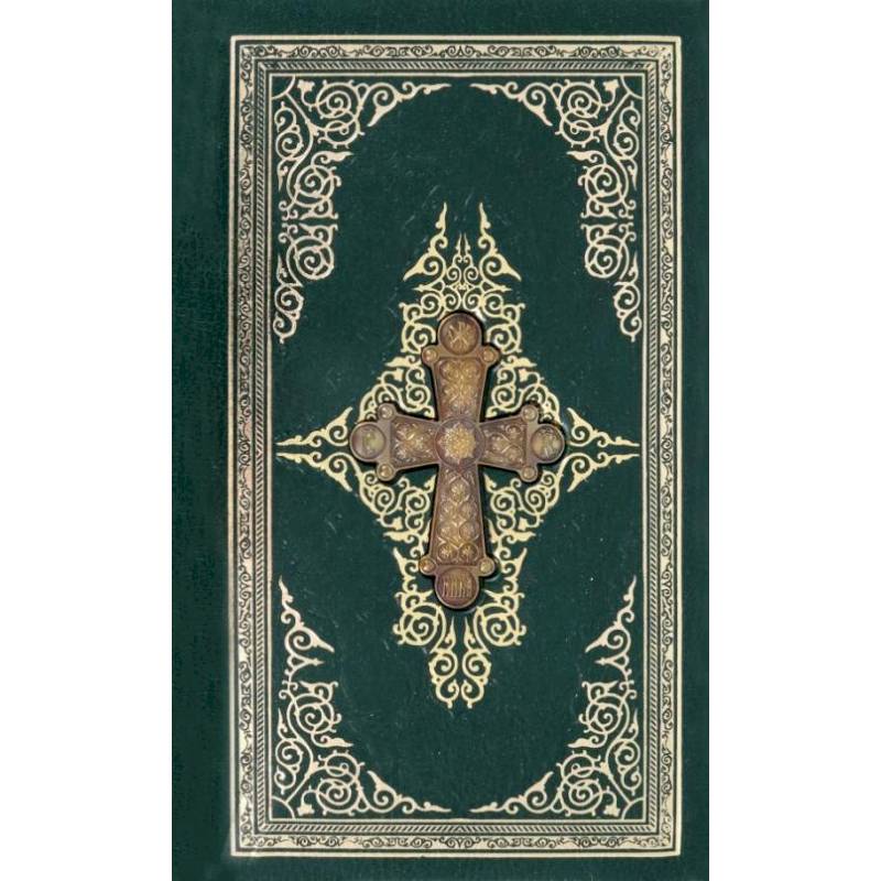 Издание в кожаном переплете с тиснением золотой фольгой, а также с накладным металлическим крестом. Использована многоцветная печать на мелованной бумаге, золотой обрез блока.
