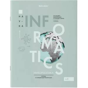 Тетрадь 48 листов "Информатика", формат А5 (165х202 мм). Изготовлена из высококачественной офсетной бумаги плотностью 60 г/м2, белизной 100%.