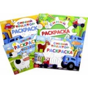 Набор представлен четырьмя книгами с различными рисунками и любимыми героями мультфильма «Синий трактор», поэтому малышу будут интересны творческие занятия с раскрасками.