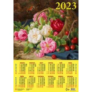 Календарь на 2023 год. Корзина с розами и бабочкой
