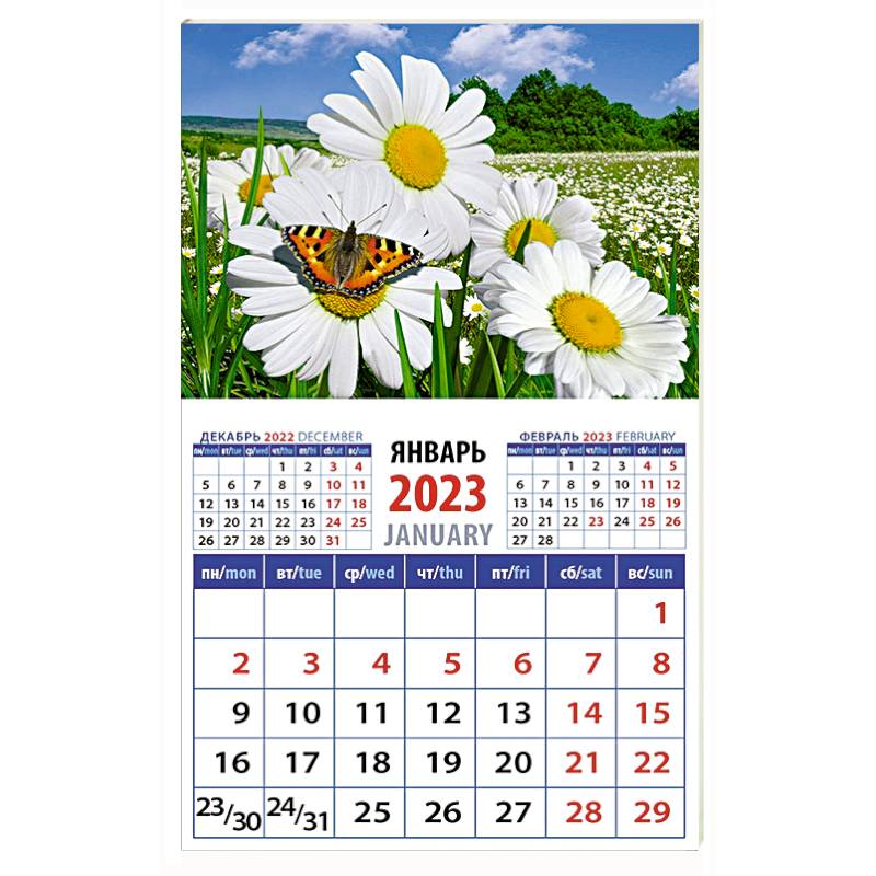 Календарь Пейзаж с ромашками и бабочкой на 2023 год