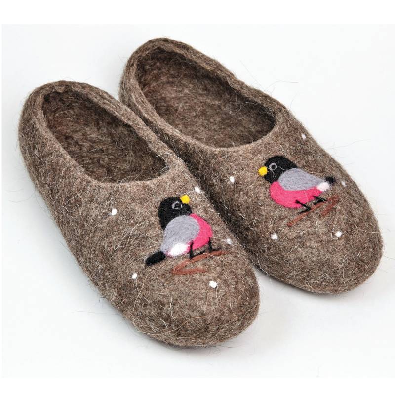 Войлочные тапочки Снегири, цвет бежевый. Размер 38