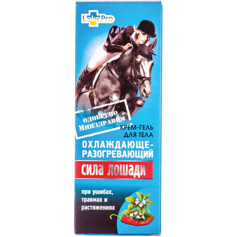 Крем-гель Сила лошади охлаждающе-разогревающий помогает избавиться от самых распространенных патологий: ушибов, растяжений, воспалений и других заболеваний мускулов и конечностей. При этом его компоненты подобраны таким образом, чтобы воздействовать на проблему комплексно. С одной стороны, это крем охлаждающий. Он помогает в кратчайшие сроки снять боль, уменьшить отек и успокоить воспаление, а в сочетании с массажем – расслабить мышцы. С другой стороны, крем так же является разогревающий. При ушибах, усталости, приступах радикулита он снимает усталость, улучшает кровообращение и клеточное дыхание в тканях, способствует их питанию и быстрой регенерации.