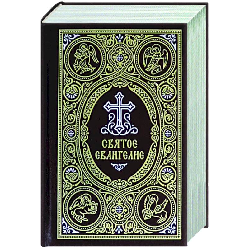 Издание карманного формата напечатано на русском языке, содержит церковные зачала и заставки с изображениями Евангелистов.