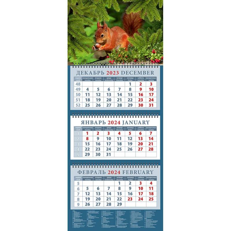 Календарь на 2024 год. Белка с орехом