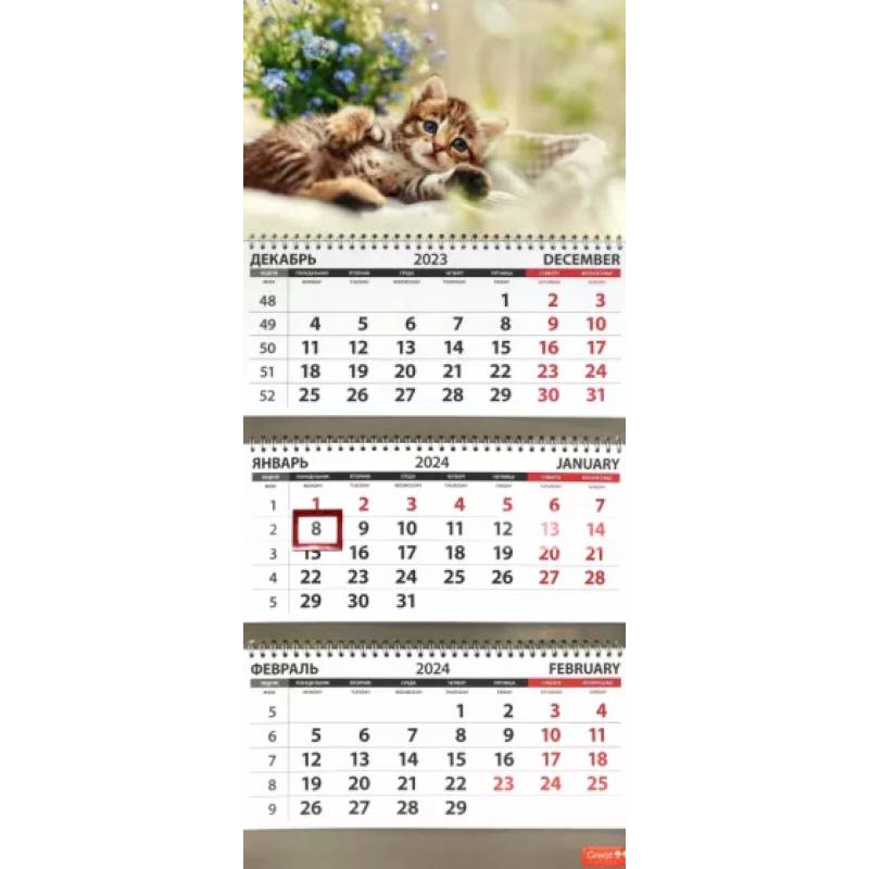 Календарь квартальный на 2024 год Котята. Цветы