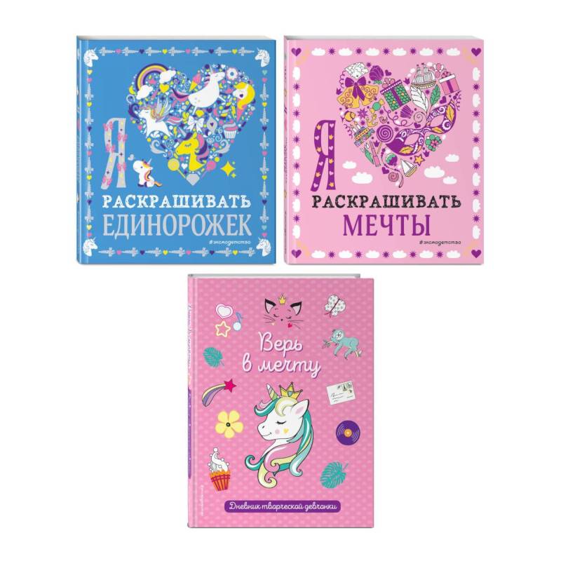 «Оживи свои мечты. Дневник, раскраски и вдохновение» — комплект из трех книг, созданный для девочек, который поможет им помечтать еще немного! В комплект входят две раскраски, которые не только развлекут, но и станут источником вдохновения. Дневник, включенный в комплект, позволит девочкам записывать свои идеи, цели и достижения.