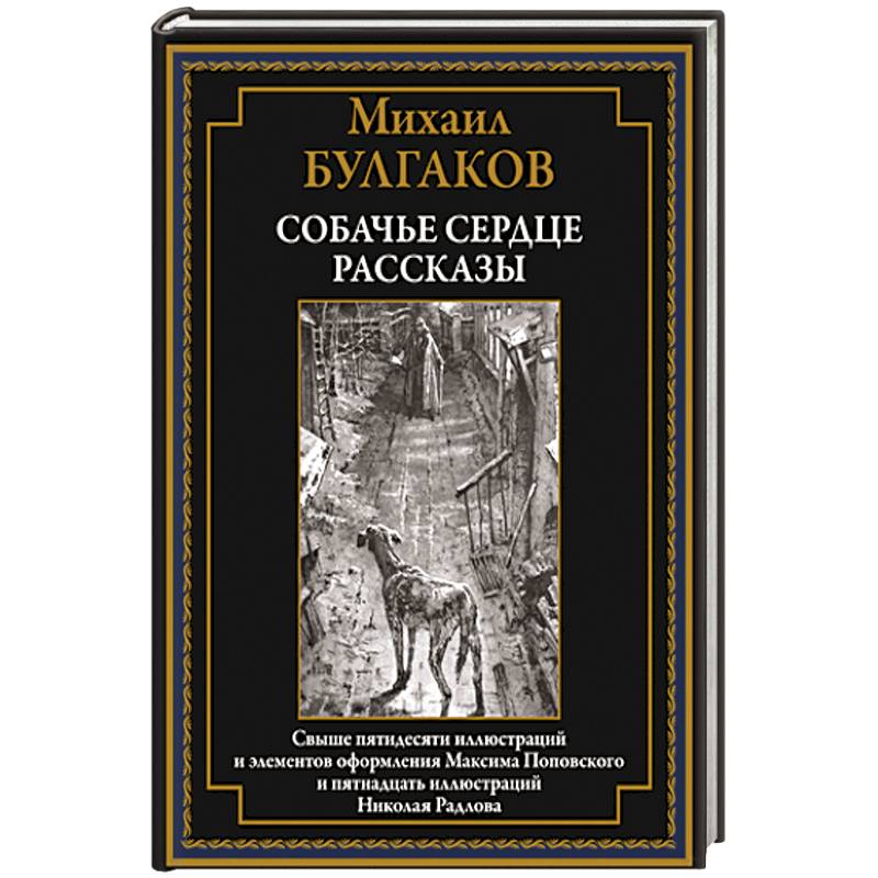 Динамичные сцены «Собачьего сердца» в этом издании украшают иллюстрации талантливого современного художника Максима Поповского. Рассказы же Булгакова сопровождают в этой книге рисунки Николая Эрнестовича Радлова (1889–1942). Будущий художник появился на свет в 1889 году в семье членкора Академии Наук и директора Публичной библиотеки Эрнеста Львовича Радлова. Рисовать Николай начал еще в школе. Учась на историко-филологическом факультете Петербургского университета, Радлов успевал посещать занятия в Академии художеств. Он мог бы стать художником-академистом, однако выбрал стезю карикатуриста. Радлов обладал удивительным талантом изображать короткие истории в виде серии последовательных сценок. В 1937 году вышел его сборник «Рассказы в картинках» со смешными рисованными историями для детей. Эта книжка имела фантастический успех, была переведена на английский и получила премию на Международном конкурсе детской книги в США.