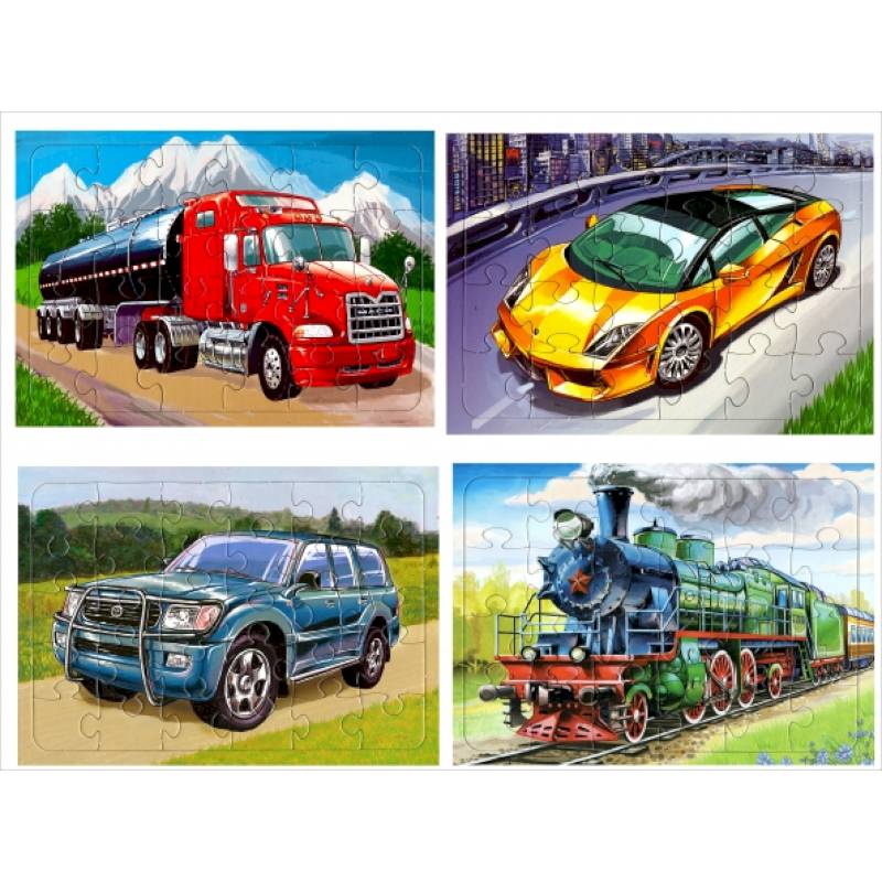 Комплект пазлов "Транспорт". В наборе 4 штуки.
