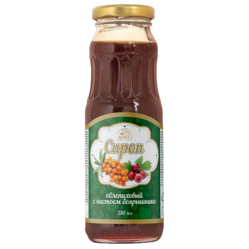 Облепиховые сиропы на основе натурального сока облепихи с добавлением настоев сибирских ягод благотворно влияют на организм человека, повышают сопротивляемость организма к воздействиям неблагоприятных факторов окружающей среды. Особенно привлекательный вкус и витаминную ценность создает купаж сиропа облепихового с настоем боярышника. Сироп облепиховый с настоем боярышника оказывает благотворное влияние на организм человека. Поддерживает и укрепляет иммунитет к инфекциям и простудным заболеваниям, увеличивает физическую работоспособность.